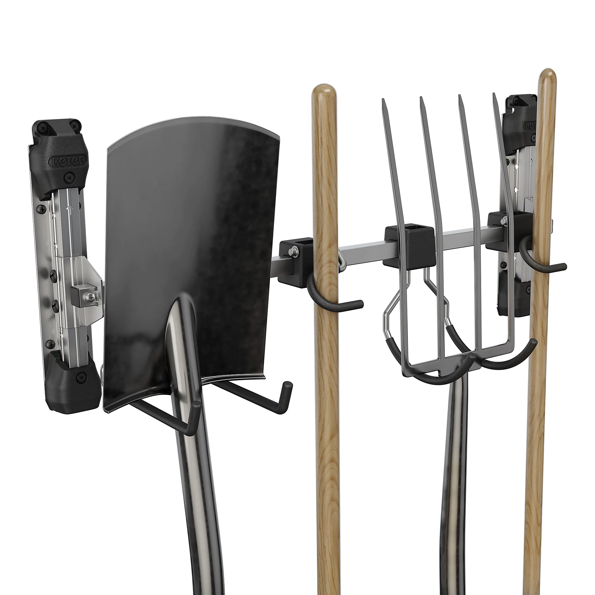Hoidik on valmistatud tugevast tsingitud terasest, mis tagab hea vastupidavuse igapäevases kasutuses. Konksude kate aitab kaitsta riputatavaid esemeid kriimustuste eest, mis on eriti oluline tööriistade ja aiatarvikute pikema kasutusea hoidmisel. Reguleeritava asetusega konksud annavad rohkem paindlikkust erineva kujuga esemete paigutamiseks, nii et saad hoiustamislahenduse kujundada vastavalt oma vajadustele.
