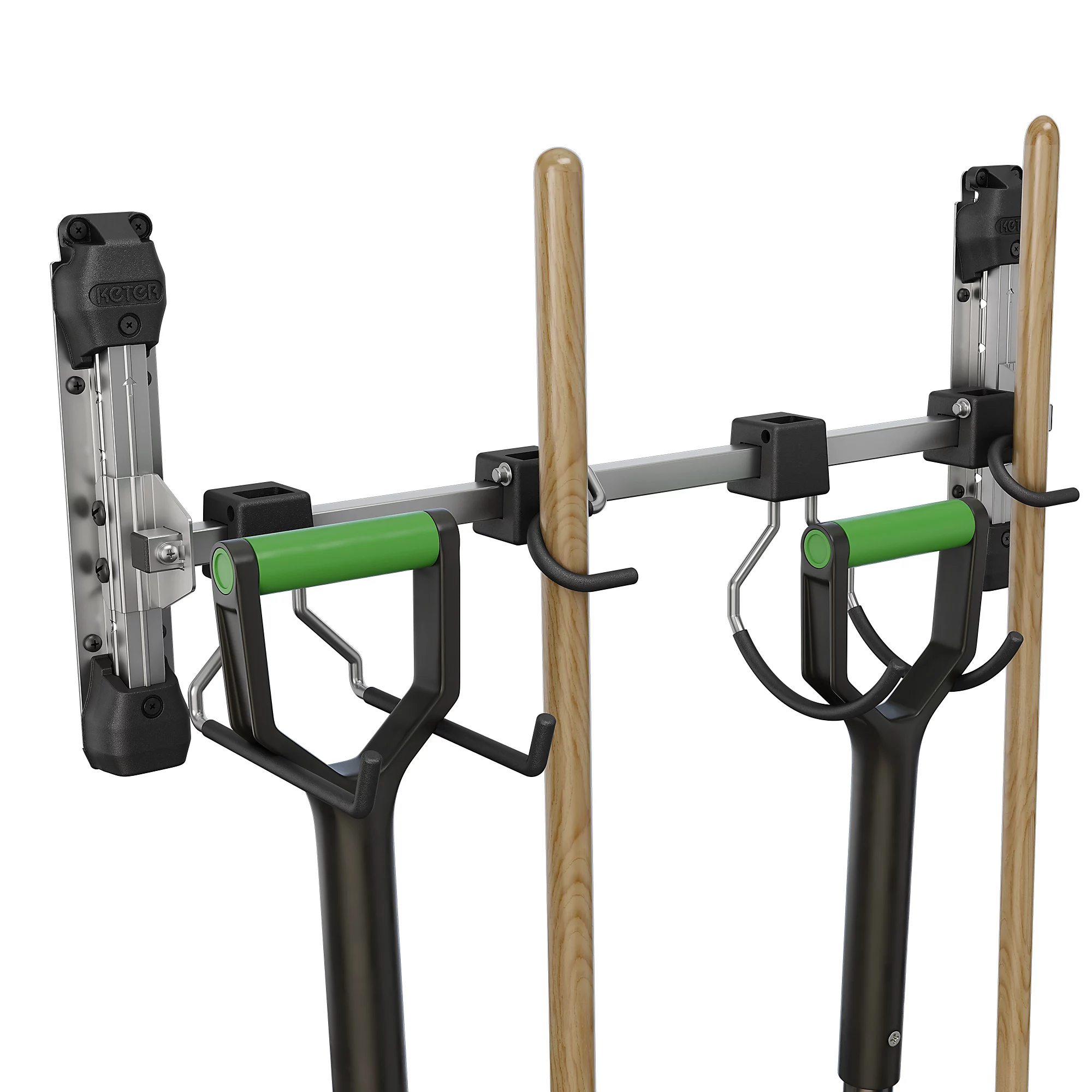 See on ideaalne lahendus pika varrega tööriistade, näiteks rehade, labidate, harjade ja muude aiatarvikute riputamiseks, et kõik vajalik oleks alati käepärast ja korralikult hoiustatud.