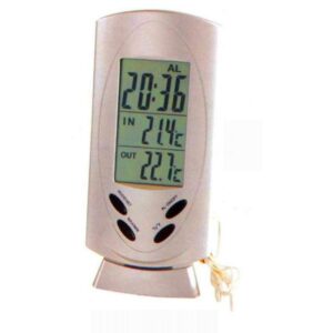 Digitaalne termomeeter sise- ja välistingimustes kasutamiseks, varustatud ka kellafunktsiooniga.