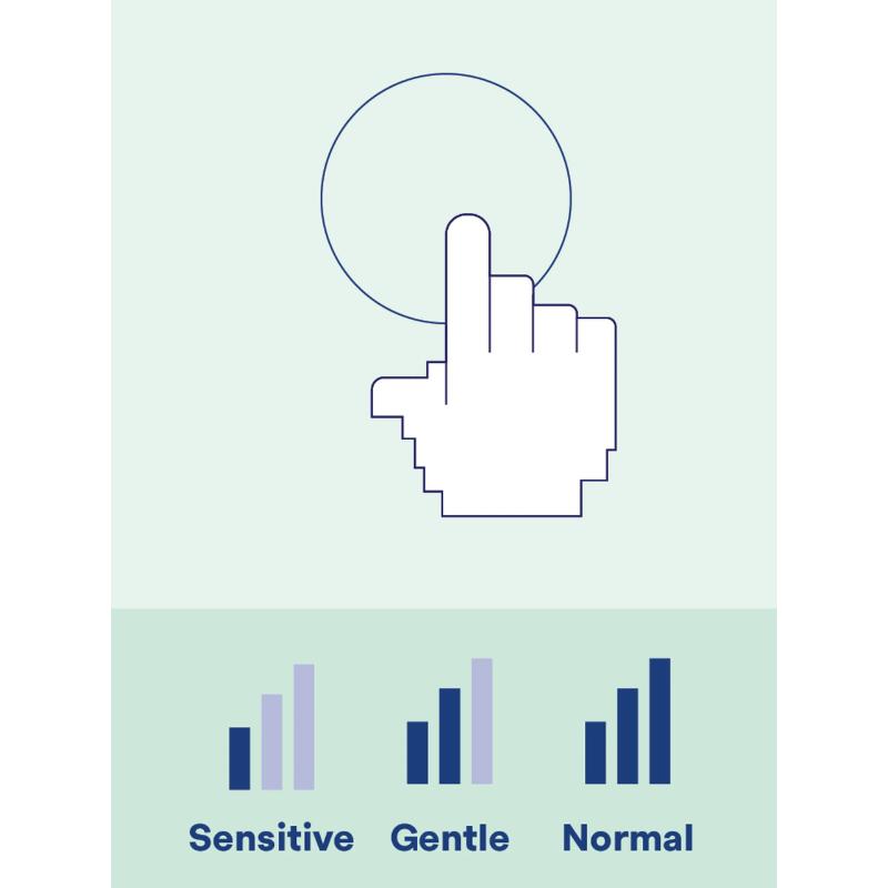 Kolm erinevat režiimi – Sensitive, Gentle ja Normal – võimaldavad valida lapse vanusele ja tundlikkusele sobiva puhastuse.