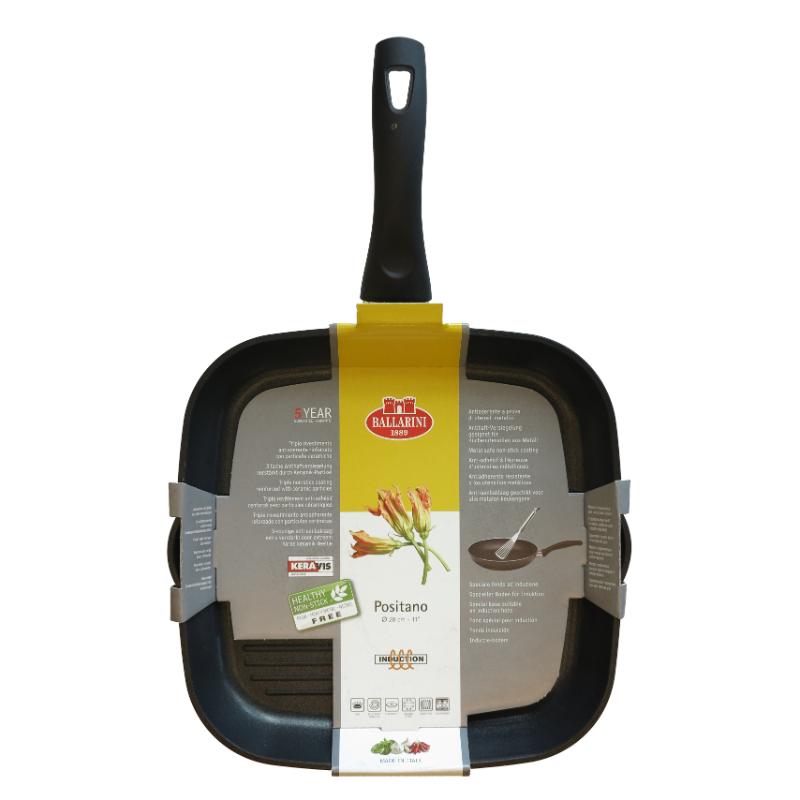 Ballarini Positano grillpann 28 × 28 cm on kvaliteetne Itaalia kööginõu, mis on loodud liha, kala ja köögiviljade täiuslikuks grillimiseks.