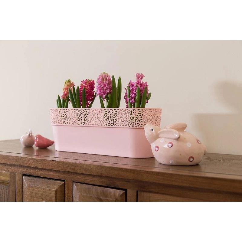 Puudriroosa toon lisab ruumi pehmust ja modernset stiili, samas kui dekoratiivne avatud muster toob taimed eriti kaunilt esile.