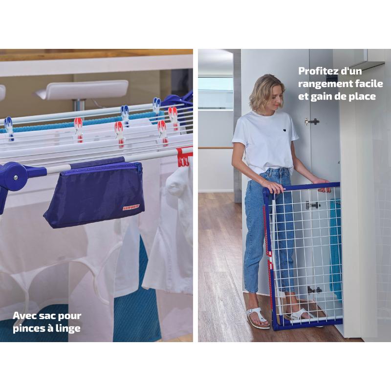 • Selle pesukuivatusrestiga tulevad kaasa riidest kott pesulõksude jaoks ja spetsiaalne riputusriba väiksemate esemete kuivatamiseks;