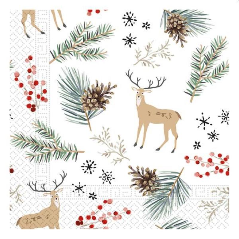 Too oma pühadelauale elegantne ja rõõmus meeleolu TORO kolmekihiliste kvaliteetsalvrätikutega, mis on kaunistatud kauni oksa ja põhjapõdra mustriga. Need vastupidavad salvrätikud sobivad suurepäraselt pidulikeks söömaaegadeks, rõhutades sooja ja hubast jõuluatmosfääri.