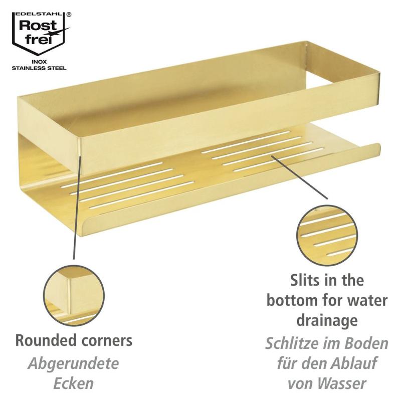 Kuldne toon annab riiulile pilkupüüdva ja eksklusiivse välimuse, mis sobib suurepäraselt nii modernsesse vannituppa kui ka art deco stiilis interjööri.