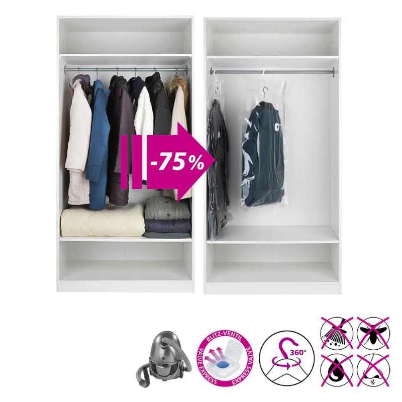 Vaakum-riidekott riputuskonksuga Wenko L 105 x 70 cm – kuni 75% ruumisäästu