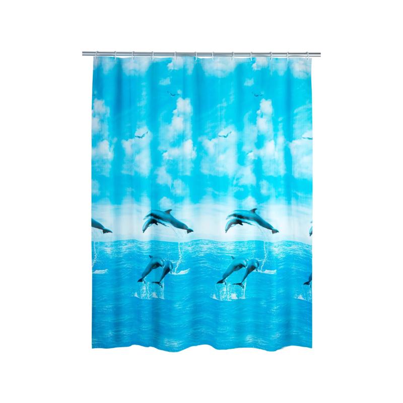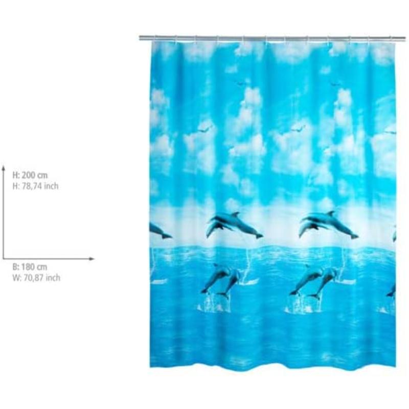 Wenko Delfiin dušikardin 180 × 200 cm on praktiline ja dekoratiivne valik vannituppa, aidates hoida vee dušialas ning lisades ruumile värsket ja elavat ilmet.